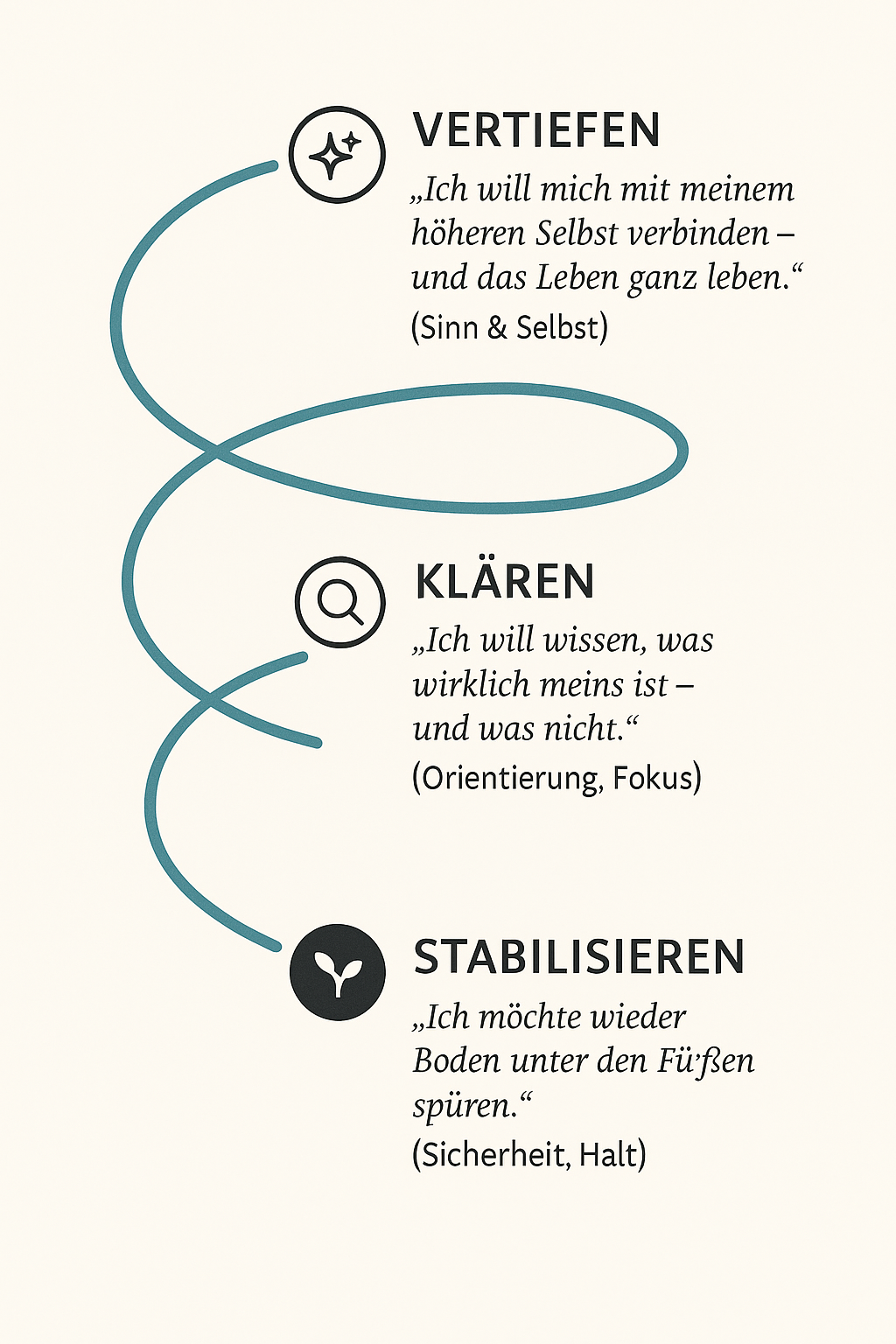 Damit du leichter findest, was zu dir passt, orientieren sich meine Programme an drei Phasen der inneren Entwicklung.